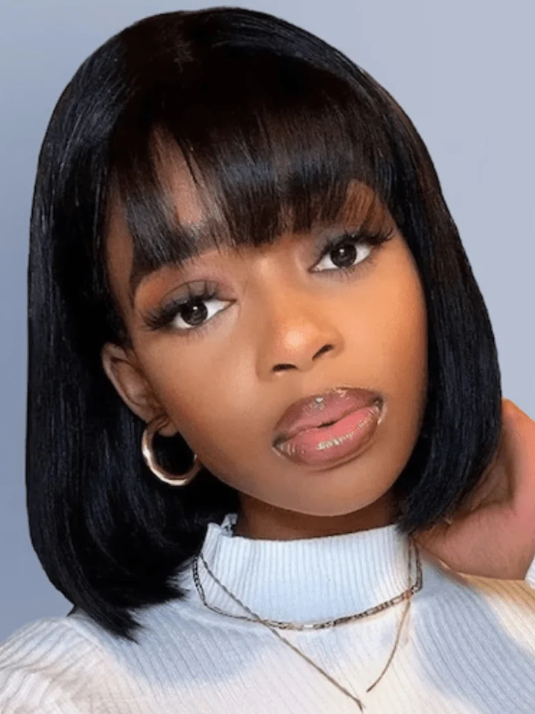 6000 Points | Klaiyi Bob Wig With Bangs Wig Glueless Machine Made Beginner Friendly Human Hair Wig