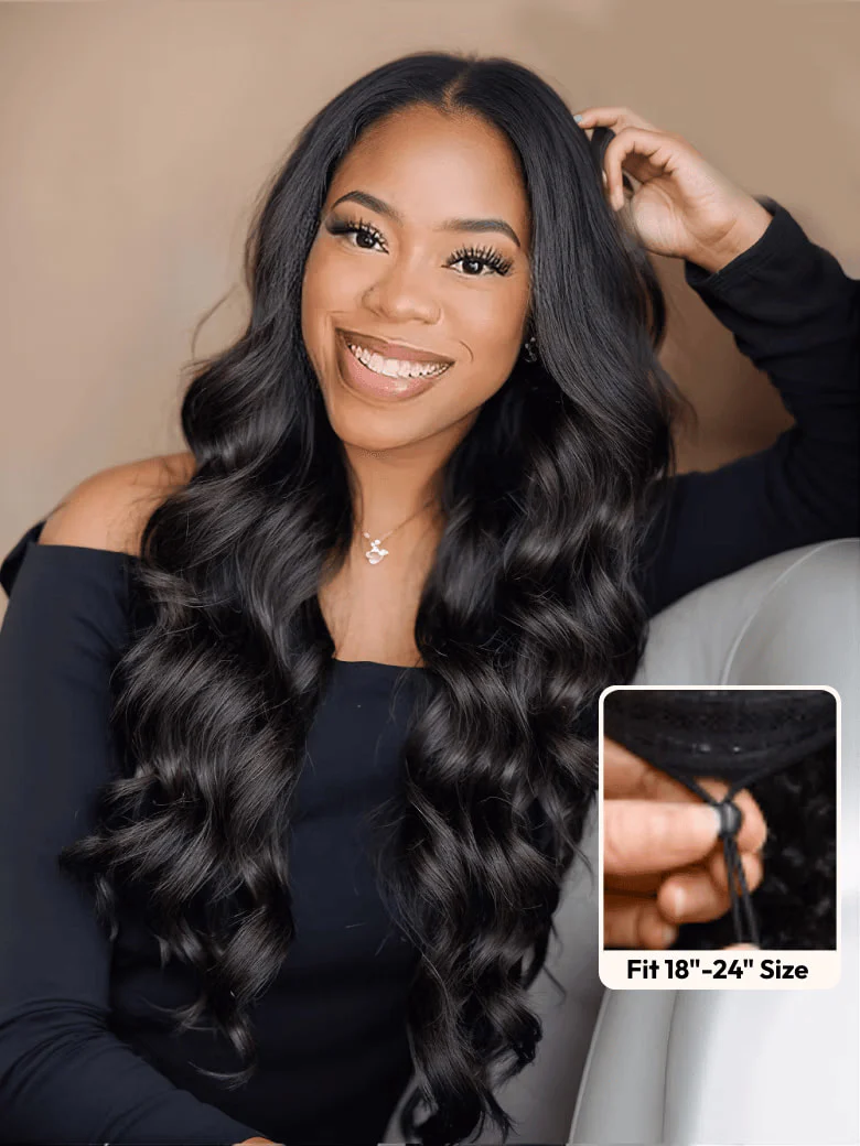Klaiyi Body Wave Easicontour V Part Glueless Wig with invisi Drawstring Human Hair Meets Real Scalp Beginner Friendly