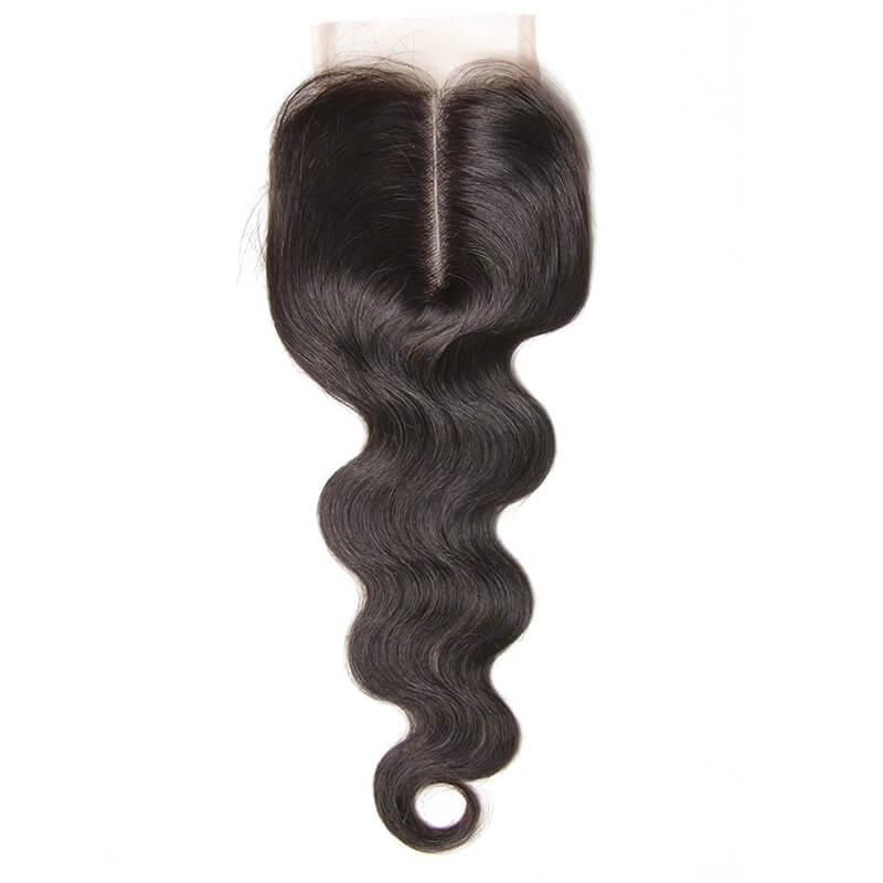 Klaiyi Body Wave Hair 4x4 Lace Closure, 1PCS Brazilian/ Malaysian/ Peruvian 100% Human Virgin Hair Lace Closure, Natural Color