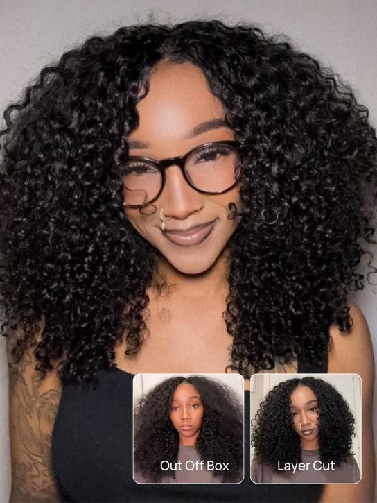 Klaiyi New EasiContour V Part Jerry Curly Wig Glueless Protective Style Human Hair Beginner Friendly Wig