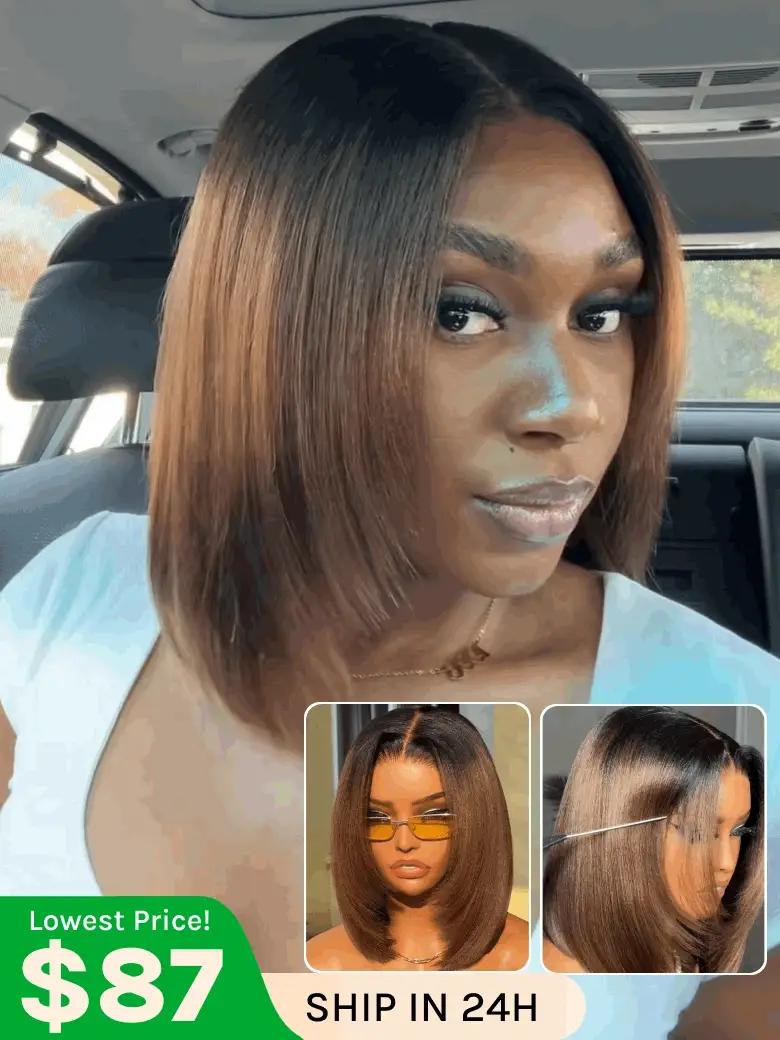 Klaiyi Bob Ombre Chestnut Brown Short Bob Wig 7x5 Bye-Bye Knots And 13x4 Lace Frontal Wig Flash Sale
